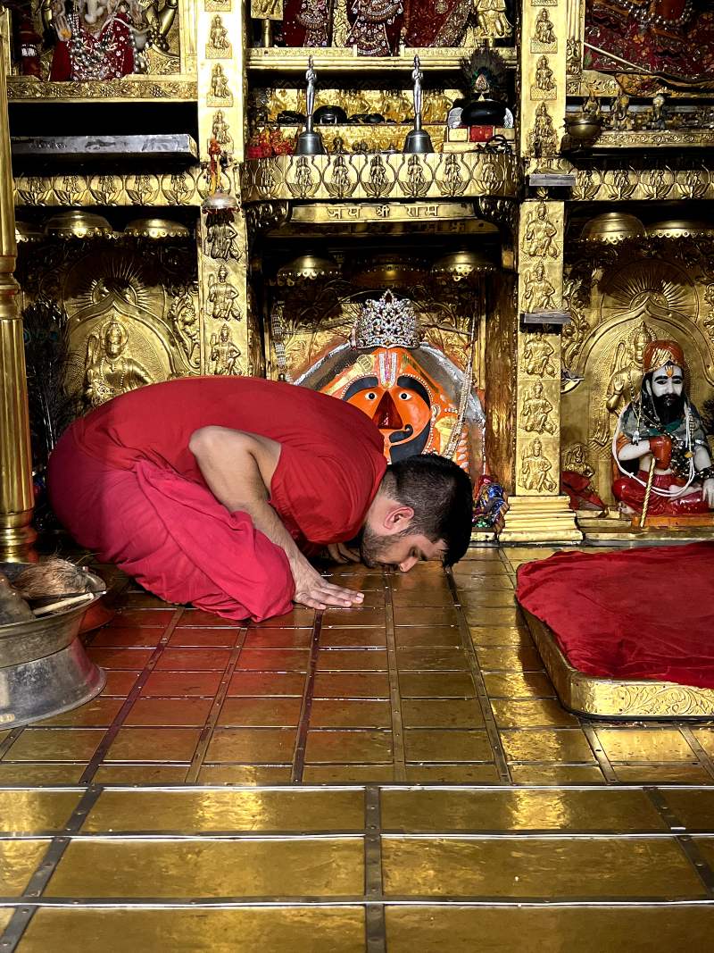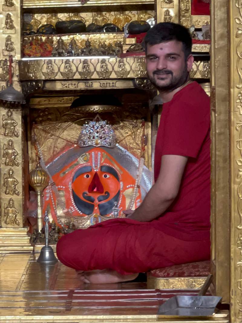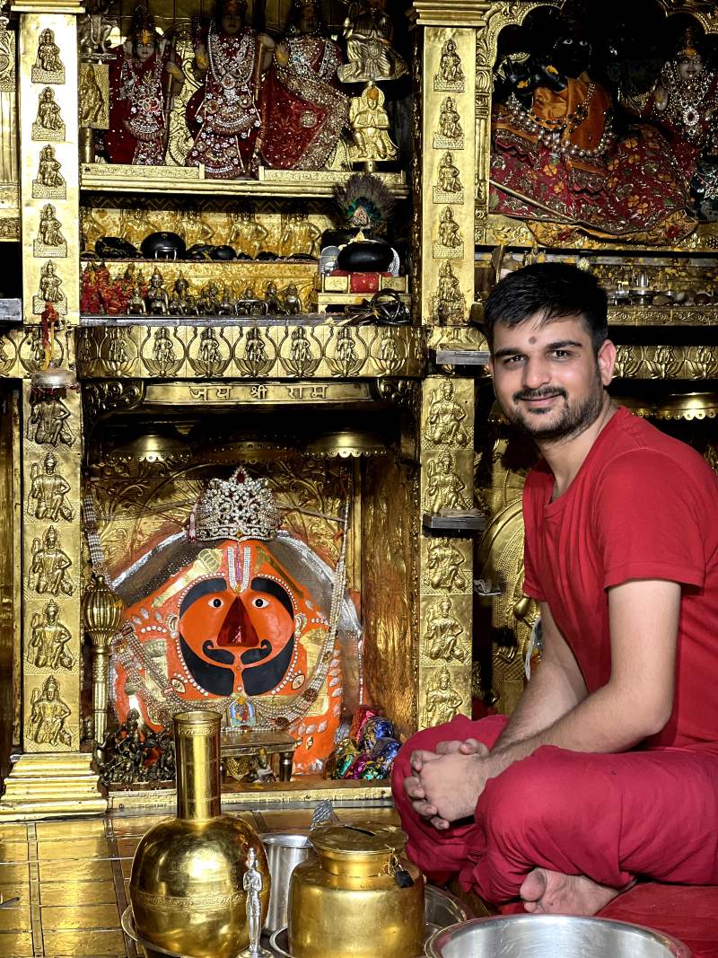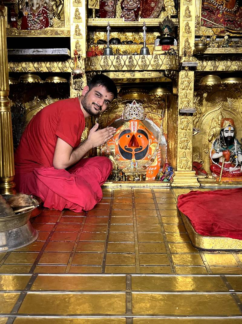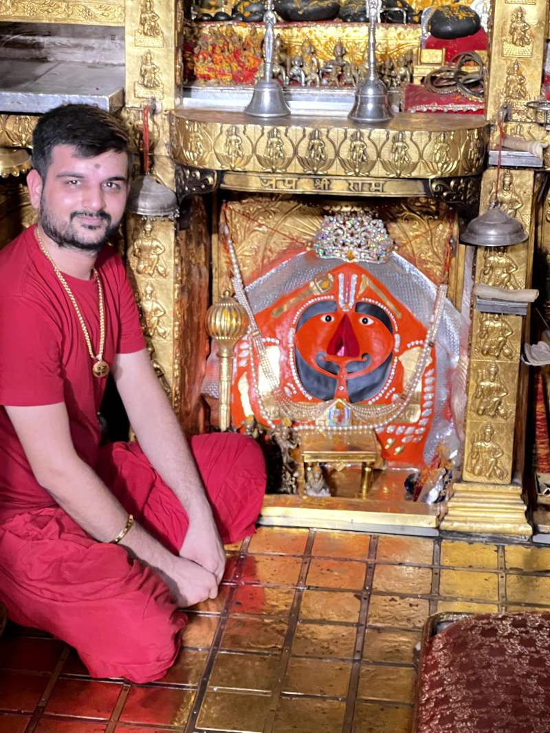 The great devotee of Shri Hanuman, Shri Mohandas Ji Maharaj, entrusted the seva (service) of Shri Balaji Maharaj to his nephew Udayaram Ji, appointing him as the first priest of the temple. Before taking samadhi, Mohandas Ji offered heartfelt prayers to Shri Balaji, seeking blessings for his sister Kanhi’s son Udayaram Ji and his descendants—so they may continue the worship with devotion, lead a righteous Grihastha Jeevan (householder’s life), and be blessed with long life.